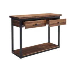 Claremont Rustic Wood Console Table With Two Drawers And Low Shelf Dark Brown – Alaterre Furniture