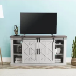 58″ TV Stand For TVs Up To 65″ Saw Cut Off White – Home Essentials