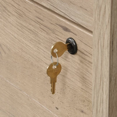 Your papers deserve more than being shoved in a drawer only to be forgotten about or disappear when you need them most. The Aspen Post® lateral file cabinet can make sure you never go scrambling for that missing document ever again. With drawers that fully extend and hold letter, legal or European size hanging files, all your important documents are readily available at your fingertips. Your files will be secure with the drawer key locks on this wood lateral file cabinet. Safety is on our minds and the patented interlocking safety mechanism of this 2 drawer lateral file cabinet allows only one drawer to open at a time. Your time is precious. That’s why this legal size file cabinet can quick and easily be assembled with a patented T-lock drawer system. It’s durable 1″ thick top allows you to display photos or memories of what really matters, your family and friends. Finished in a universal Prime Oak™, this 2 drawer file cabinet is ready to help you organize your electronics manuals, vital documents and treasured files.