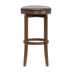 Simple and versatile, the Hillsdale Furniture Brendan Backless Swivel Bar Height Stool has a Brown Cherry wood finish and Brown faux leather upholstery that blends seamlessly with most décor. Its padded seat and 360° swivel functionality make this bar height stool comfortable and convenient — while the perfectly placed footrest makes it easy to relax and reinforces the structural integrity of the swivel wood stool. Ideal for kitchen islands and bar-height dining tables. Assembly required.