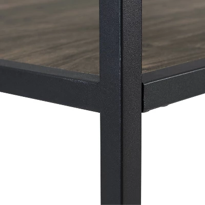 Add industrial chic to your home office with the Jacobsen 3pc Desk Set. The sleek desk is flanked by two large etageres, creating an organized work station with ample storage. Each etagere has two open stationary shelves and a large cabinet in the base. The desk features a large workspace and two full-extension flat front drawers. Perfect for telecommuting, the Jacobsen 3pc Desk Set is a home office standout with its mix of sturdy steel and the look of rustic wood.