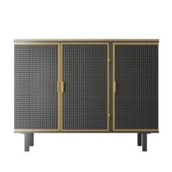 This sideboard is a storage solution designed for your convenience and comfort. Sturdy and stable construction offers ample storage space. Complete your home hallway, living room or bedroom with a casual three-door cabinet with two levels of storage.