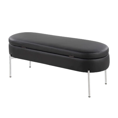The Chloe Storage Bench by LumiSource provides convenient storage along with a stylish look. Perfect for extra seating, an entryway, or at the foot of a bed, the Chloe Storage Bench features sleek faux leather upholstery accented by a luminous chrome metal base. Open the flip-top lid to find a roomy storage area where you can conveniently hide magazines, remote controls, and anything else you want to keep out of sight. Available in a variety of colors, choose the one that fits your glam area the best!