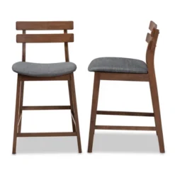 Set Of 2 Larine Wood Counter Height Barstools Dark Gray/Walnut – Baxton Studio