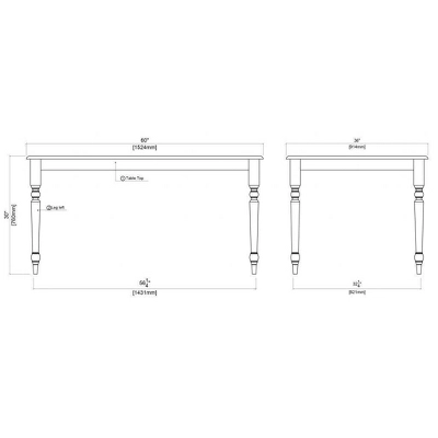 - Table dimensions: W: 60" x H: 30" x D: 36"