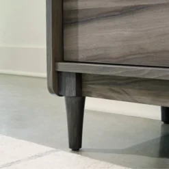 Storage with limited space in mind. Add style while considering the space in your home with this narrow bookcase from the Harvey Park® collection. This 3-shelf narrow bookcase features two fixed shelves to store and display books, plants, décor and more! This narrow bookcase with drawers includes two file drawers with full extension slides to hold letter, legal, or European size hanging files – talk about organization! An enclosed back with cord access ensures that your mid-century modern bookcase will be cord clutter free—making room for a small lamp, phone chargers, and more. Solid wood feet detailing, and a beautiful Jet Acacia™ finish are the details that make this narrow bookshelf stand out from the rest. If you’re looking to add stylish storage without taking up a lot of floor space, this bookcase with storage is for you.