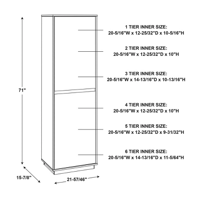 - MEASUREMENTS OF 21.88IN L X 15.88IN D X 71 HIN OFFER VERTICAL STORAGE IDEAL FOR TIGHT QUARTERS