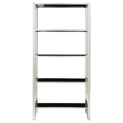 Add an effortless touch of style to any living or office space with the Hurst 4-Shelf Bookshelf. This sleek, unique piece can store whatever you need while adding a splash of style to your home. It’s chrome metal frame ensures durability and features black glass shelves for a versatile look. This bookcase provides cutting-edge design that makes it a great accent to any room.