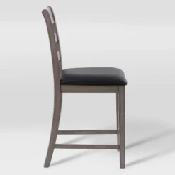 These ladder back classic washed gray counter height dining chairs and table have clean lines and fit perfectly in any space. They have a high back for support and a foam cushion wrapped in a black leatherette that is durable and easy to clean. Coming in a set of six chairs and one table they are a cohesive mix of style and comfort, a great addition to your dining room.