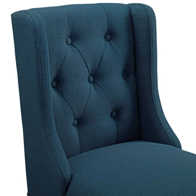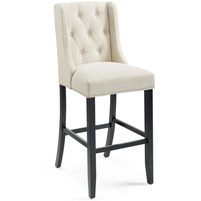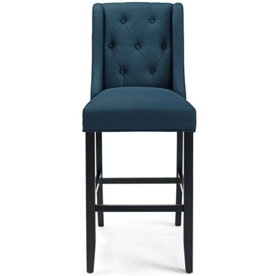 Bestow splendor with the Baronet Tufted Button Upholstered Fabric Bar Stool. Featuring dense foam padding, sinuous spring support, and soft polyester fabric upholstery, enjoy a luxe seating experience with this luxurious tufted button bar stool. Complete with sleek curves and dignified form, this modern bar stool with solid wood legs with stretcher supports and non-marking foot caps is the perfect choice for the home bar seating area. Bar Stool Weight Capacity: 500 lbs.