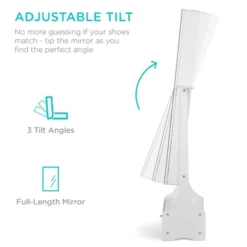 - ADJUSTABLE TILT: Innovatively built with a sturdy base that can be tilted to 3 different angles to give the best head-to-toe view for easy and convenient outfit planning while a magnetic door ensures accessories stay secure inside; OVERALL DIMENSIONS: 18.5″(L) x 15″(W) x 62.25″(H); Weight Capacity: 15 lbs.