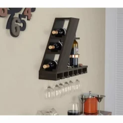 Complete your farmhouse style billiard room with a barrel inspired mini-bar. The reclaimed oak finished wine rack is adorned with nailhead trim for a rustic style. This display combines the likes of a wine barrel and a revolver with the wine bottle slots along the rounded sides. For an even more exciting feature, a stemware rack hides behind the wood panels.