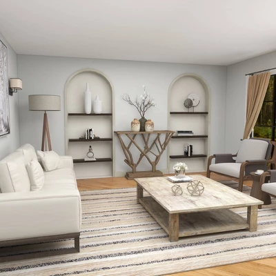 Display as console table in your boho, country, coastal, or farmhouse-themed home space. Bring a finishing touch to your home with an inviting appeal with this console table. A sturdy and long lasting construction that for a years of enjoyment. Suitable for indoor use only. Due to the live edges of the piece, each is unique, so no two products will have an identical pattern, shade, or cut. Maximum weight limit is 50 lbs. Contemporary design.
