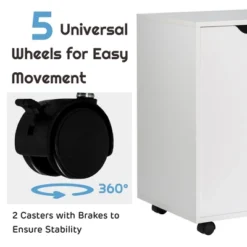 - Easy to Move: The file cabinet is equipped with five 360° swivel casters, allowing you to move it to any place freely without scratching the floor. And the front two casters have built-in brakes, which can keep the cabinet in place to increase stability.