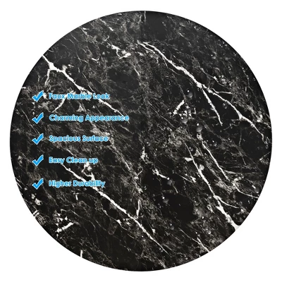 This elegant faux marble table can be used as a end table, 2 person dining table and standing workstation. The convenient swiveling design allows you to enjoy a 360-degree rolling while chatting or having dinner with your family and friends. And you can adjust the height from 28 inch to 36 inch This pub bar table is a great match for kitchen, pub, office, exhibition, coffee house, dining room, living room, rest area, restaurant. By the way, the smooth PVC tabletop make it easy to clean and maintain.