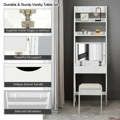 - Flip top mirror can turn the makeup table into a writing desk in seconds.
