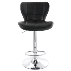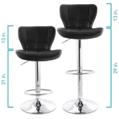Add a stylish touch to your home bar or kitchen counters with the Elama 2 Piece Adjustable Faux Leather Bar Stool in Black with Chrome Base. This chair is uniquely shaped for a comfortable fit while you’re seated. The Elama adjustable chair is also crafted from quality and sturdy metal for a strong and long-lasting design.