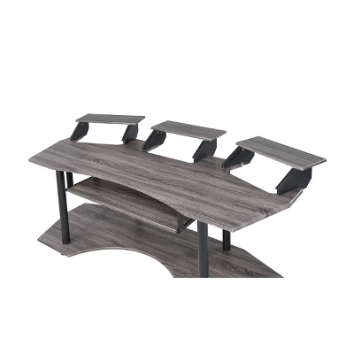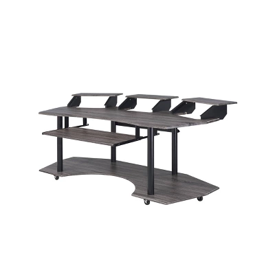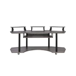 With no detail left unnoticed, this Eleazar Music Recording Studio Desk provides excellent functionality and versatile organizing options. With an extensive desk top design, plenty of workable surface area is left. The multi-function hutch is perfect for displaying monitors, speakers, documents, and books. While the lower shelf can be used to place larger items. Available in two sizes and two different finishes, this contemporary piece will sure to be the perfect addition to your home office.