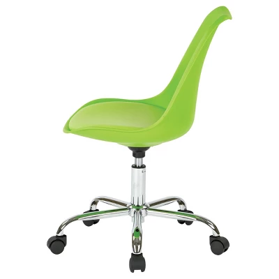 A mod-inspired chair brightens any space with energetic, funky colors. As boldly aesthetic as it is functional, you’ll sit contently against a molded PP shell contoured to the S-curve of your spine. Work comfortably atop a padded faux leather, pneumatic height-adjustable seat and remain fully mobile with the futuristic chrome base attached to five wheel casters. With a modern throwback to times of Motown and mood rings, this task chair becomes more than a place to sit; it’s a super groovy home statement.