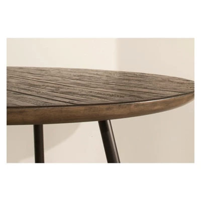 A unique marriage of design styles makes the Hillsdale Furniture Forest Hill Dining Table an instant classic. The slight flare of a mid century modern leg, combined with a round table top and subtle rustic accents, capitalizes on the trends of yesterday to create today’s style. The Brown finished wood is distressed, yet smooth, to create a natural timber look. The Brown metal base features a powdercoat finish that scatters light. Chairs sold separately. Assembly required.