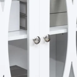 Quickly add that needed storage and get kitchen supplies clutter-free with this HOMCOM kitchen buffet cabinet. Framed tempered glass makes this sideboard buffet stylish and keeps the item without dust. The sideboard with two storage cabinets and a tabletop provides a versatile storage solution. Customize your home space with the interior adjustable shelves that move to fit your needs. This HOMCOM buffet sideboard will create a classic feel and grace your house.