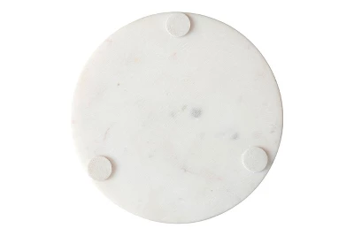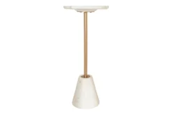 Stunning white marble top and baseIron post with gold electroplating finishUltra modern table top designPerfect accent to your modern sofa or lounge chair