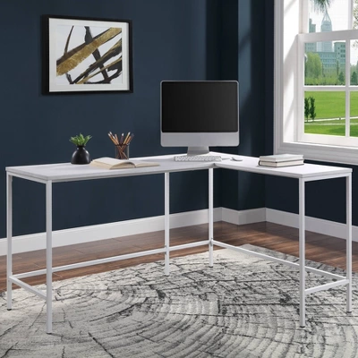 The Contempo L-Shaped desk’s expansive 56” x 48” surface provides ample work-space for your home office. The refined lines of the sturdy steel frame will be the professional and stylish focal point in your room for decades. Designed to nest the Contempo Mobile Storage Cart neatly underneath the surface for storage or an additional workspace. Choose between two modern finishes, White Oak with white metal frame, or Ozark Ash with black metal frame. Assembly is required.