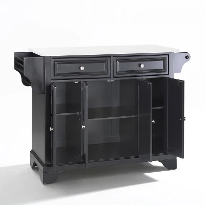 The Lafayette Full-Size Kitchen Island adds enduring style and storage to your kitchen. Featuring three cabinets, each with an adjustable shelf, this island can easily store pots, pans, and small appliances. Two large drawers keep small items like utensils and dishtowels close at hand, while the built-in spice rack and paper towel holder keep your counter space free of clutter. With a beautiful granite countertop and sculpted feet, the Lafayette Full-Size Kitchen Island is a welcome addition to your kitchen space.