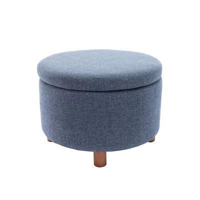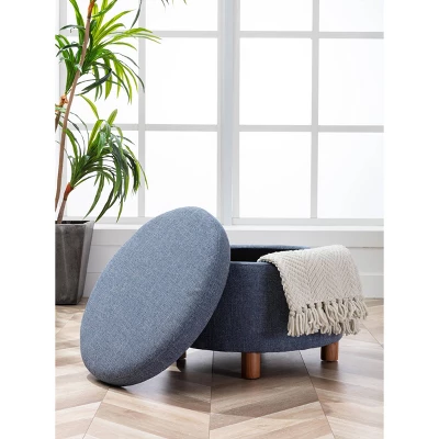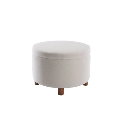 This classic 24″ round storage ottoman will have lasting function and be a timeless style addition to your home. Designed to be an easy storage solution in your bedroom, living room, or entryway – use for storing blankets, shoes, pillows, or remotes. Offered in classic fabrics that will be an easy compliment to any interior style. Easy to care for and maintain.