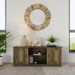 - AMPLE STORAGE – This TV console features two center cubbies and two closed cabinets with adjustable shelves that create ample storage for cable boxes, DVD, Blu-ray players, books, movies, and home décor.