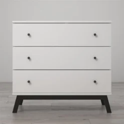 Add a contemporary feel to your child’s bedroom or nursery with the Little Seeds Rowan Valley Lark Urban 3 Drawer Dresser. The chassis is made from laminated particleboard that is finished in a crisp white finish that contrasts the black, powder-coated, angled metal base for a contemporary look. Durable metal drawer slides last for years and are made with built-in stops for safety. Keep folded t-shirts, jeans, sweaters, and extra linens stored away in the 3 spacious drawers. The 3 Drawer Dresser can be converted to a Changing Table by adding the Little Seeds Changing Table Topper (sold separately). Remove the Changing Table Topper when your child outgrows it to convert back to a youth dresser. The 3 Drawer Dresser meets or exceeds the CPSIA Juvenile testing requirements and a wall anchor kit is included to ensure your child’s safety. The Dresser ships flat to your door and requires assembly. Two adults are recommended to assemble. Once assembled, the Dresser measures to be 33”H x 35.5625”W x 17.9375”D. Little Seeds not only creates this and many more on trend baby to teen furniture pieces, we also partner with various environmental protection programs to protect pollinator and other wildlife habitats for future generations.