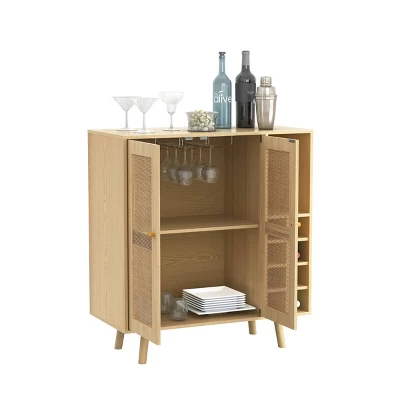 placemats, bar glasses and your favorite liquors. Left Inside Cabinet Top Shelf: 23.50”W x 15”D x 14.25”H. Left Inside Cabinet Bottom Shelf: 23.50”W x 15”D x 14.25”H. Right Open Shelf Top: 23.50”W x 15”D x 14.25”H. Right Open Shelf Bottom: 23.50”W x 15”D x 14.25”H. Removable Wine Bottle Cubby: 3.375”W x 15”D x 3.5”H. Leg Height: 5.25″