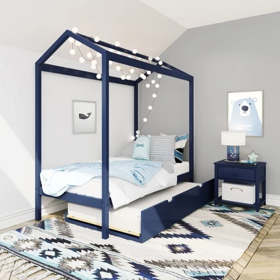 - Twin House Bed with Trundle: Fun and functional, this twin house bed is the perfect bed for any kids room; House bed design features removable legs for added safety; Twin trundle creates space for sleepover guests