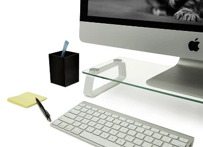 MI-7262 is an elegant, glass and aluminum stand that fits most screens or AV components. Elevate your display off your desk to open up additional space under the stand to stare your laptop, keyboard, or other office accessories. Raises your monitor up to a more ergonomic position. Large weight capacity, holds screens and devices up to 44 lbs.