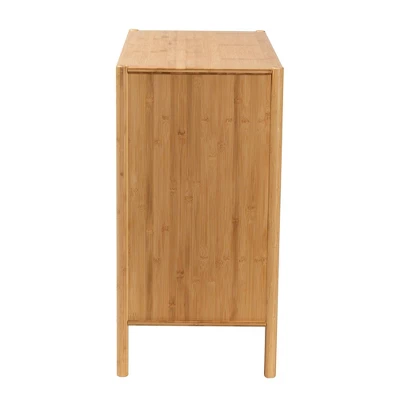 Express a style of casual elegance in your space with the carefree flair of the Naresh storage cabinet. Made in China, this efficient piece exudes mid-century charm with a bamboo frame embellished with see-through windows. Three wide drawers provide superb storage to organize your interior while the tabletop acts as a wonderful display area. The Naresh requires assembly and features minimalist door handles to draw attention to the natural grain of the wood. Clean lines and rounded legs produce a delightful silhouette, making the Naresh cabinet a chic accent in any layout. Overall Dimensions: 31.50″ W x 15.70″ D x 30.70″ H; Drawer(s): 28.30″ W x 11.80″ D x 7.90″ H; Clearance: 4.70″ H;