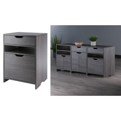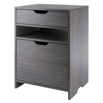The Nova Filing Cabinet with Drawer offers a streamlined way to transform any room where you need stylish, easy-access storage. The Cabinet is ideal in a home office for keeping important paperwork and documents close at hand while doubling as a printer stand. Remove the file rods and it’s a great organizer in a garage or shed for tools and gardening equipment. Or use it as a side table in a child’s bedroom to reduce the clutter of toys, electronics, and sports gear. The file rods are adjustable to fit either legal or letter size files. And both the drawer and cubby add extra storage. The cut-out handles and wood-grained Charcoal finish provide a contemporary, simple look that will work well with almost any decor. For additional storage, combine the Nova Filing Cabinet with other organizers from the Winsome Nova collection. Made of sturdy composite wood, it conveniently ships in 1 box with all the hardware needed for assembly.