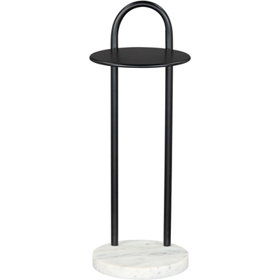 The Panda Side Table has a powderoated steel frame and top with a marble base. It is a modern glam piece for any space, residential or hospitality.