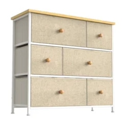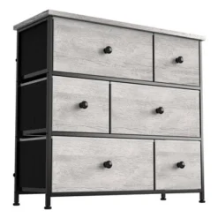 It’s more than just a pretty face. The sleek design of this REAHOME 6 Drawer Dresser will pair well with your existing furniture without sacrificing utility.With 6 drawers, 3 small and 3 big, this minimalist-designed storage chest provides all the room you need to store anything from clothes to home goods. The steel frame, wooden countertop, and fabric drawers provide a sturdy structure made from reliable materials. Adorn the top 31.4-inch waterproof surface with your favorite decor items. The adjustable feet and wall attachment add a level of increased safety, especially if you have climbing pets or kiddos.This organizer is ideal for storing activewear, blankets, outerwear, socks, and other clothing or home goods. Position this piece in entryways, bedrooms, living rooms, nurseries, hallways, offices, or any place that needs an injection of style.Elevate the sophistication of your space with a modern piece that is sure to impress. This 6 Drawer Storage Organizer from REAHOME has the functionality you need from a dresser while also being easy on the eye.