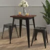 Accent your dining setting with the elegant look of the Rowan Mixed Material Rectangle Dining Table from Threshold™. This rectangular dining table features a brown wooden tabletop with four metal legs in a black powder-coated finish for easy integration into a wide variety of decor styles. Add coordinating chairs to create a perfect dining setup.