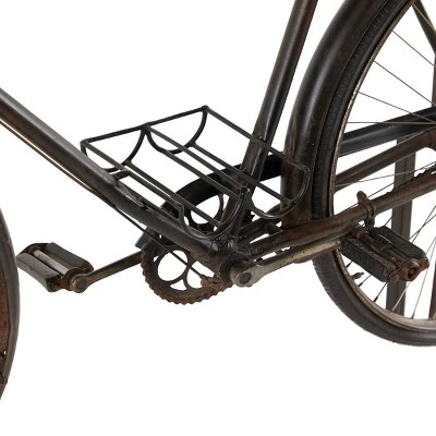 Bring a finishing touch to your home with an inviting appeal with this console table. A sturdy and long lasting construction for a years of enjoyment. Metal bike wine rack carries a design that allows it to function as a display table and wine necessity storage in the living room or home office. Includes anti-tipping hardware to prevent tipping. This item ships in 1 carton. Suitable for indoor use only. Maximum weight limit is 100 lbs. Made in India. This is a single bar. Metal bar features a single shelf. Rustic style. Black bar can hold 2 average wine bottles.