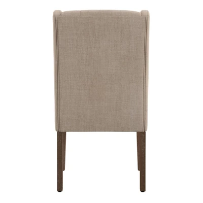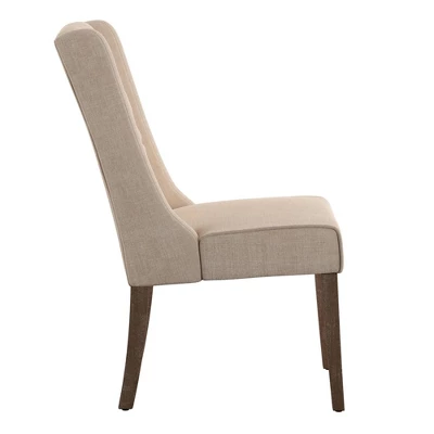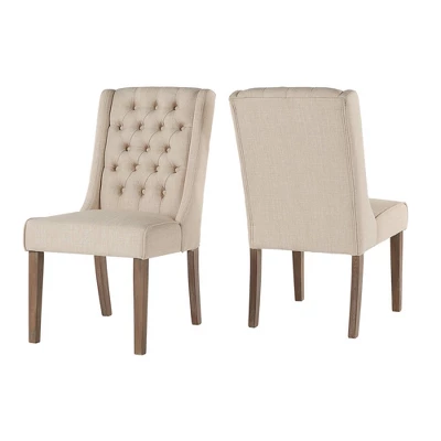 Add lux comfort and classic style to your dining space with the Old Town Chestnut Finish Wingback Button Tufted Dining Chair (Set of 2) from iNSPIRE Q. This set will instantly become the most popular seat in the house with the soft linen upholstery and cozy comfort delivered by the wingback and tufted features. Constructed with solid wood for dependable strength, the legs display a warm, chestnut finish that pairs perfectly with rustic and traditional elements. With your choice of beige or gray upholstery, this exquisite set will blend seamlessly with your personal style.